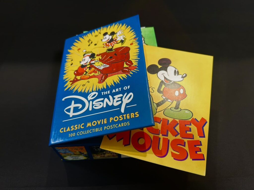 今回の企画のために購入したポストカード100枚セット。正式名称は「Art of Disney: Classic Movie Posters 100 Postcards」で、Amazonによると2020年発売。なお数えてみたところ、同じ映画のポスター違いで被った分が31枚、ミッキーの宣伝用ポスターが2枚(今回の記事のトップ写真)入っていたので、それらを除くと映画の純本数は67本となる。意外とダブりが多いな